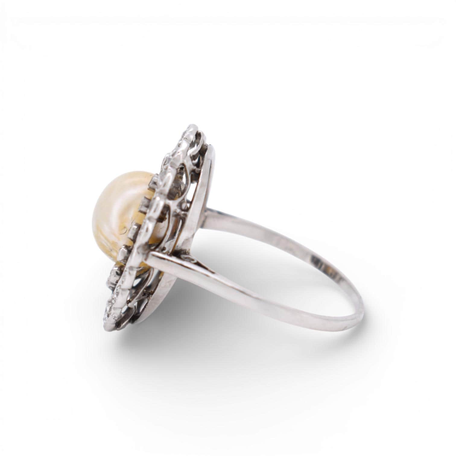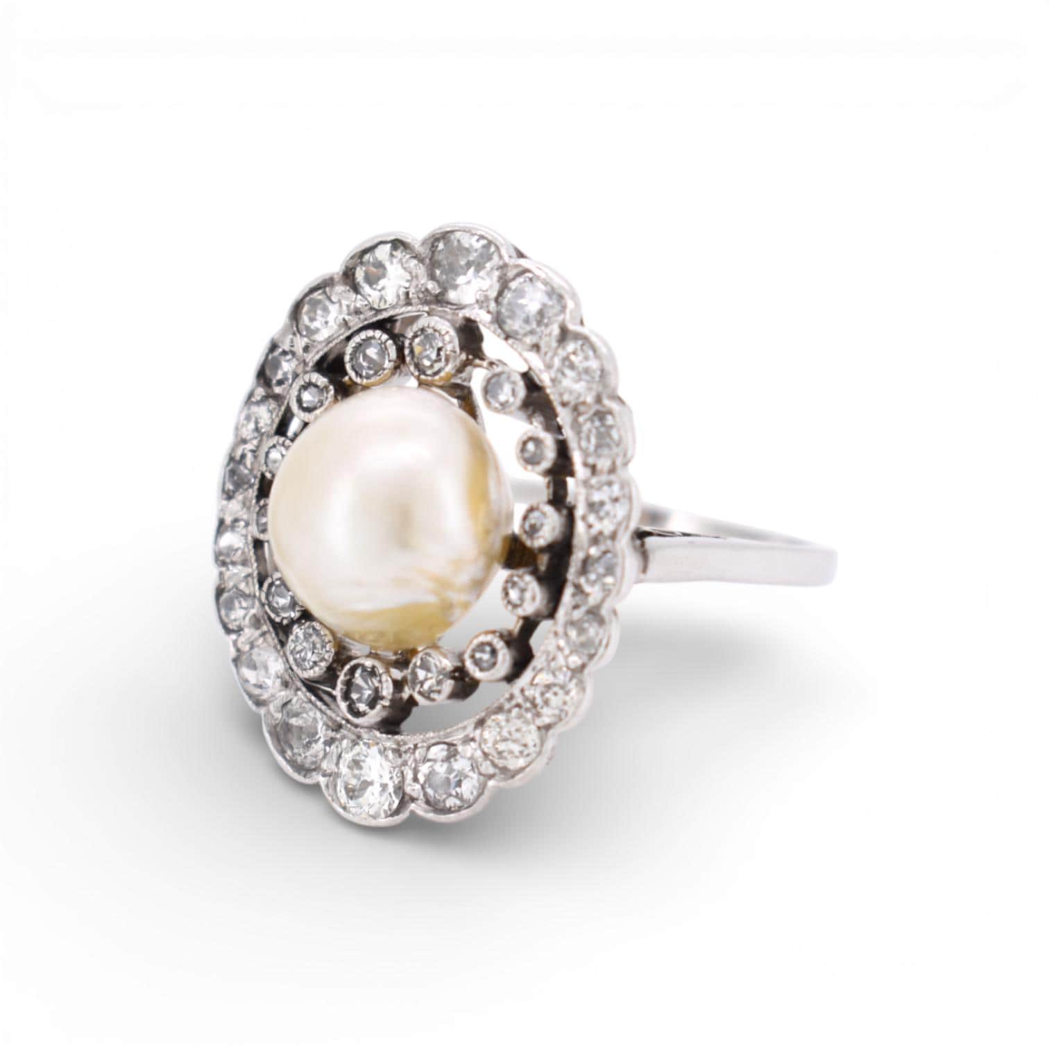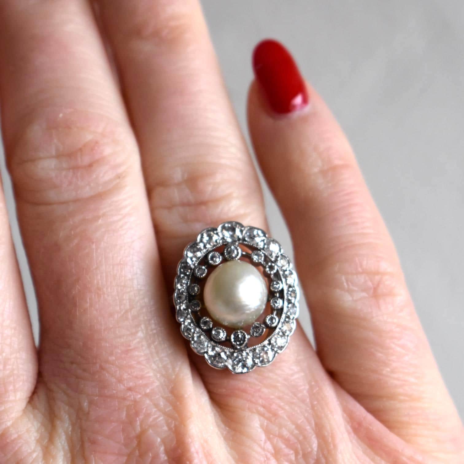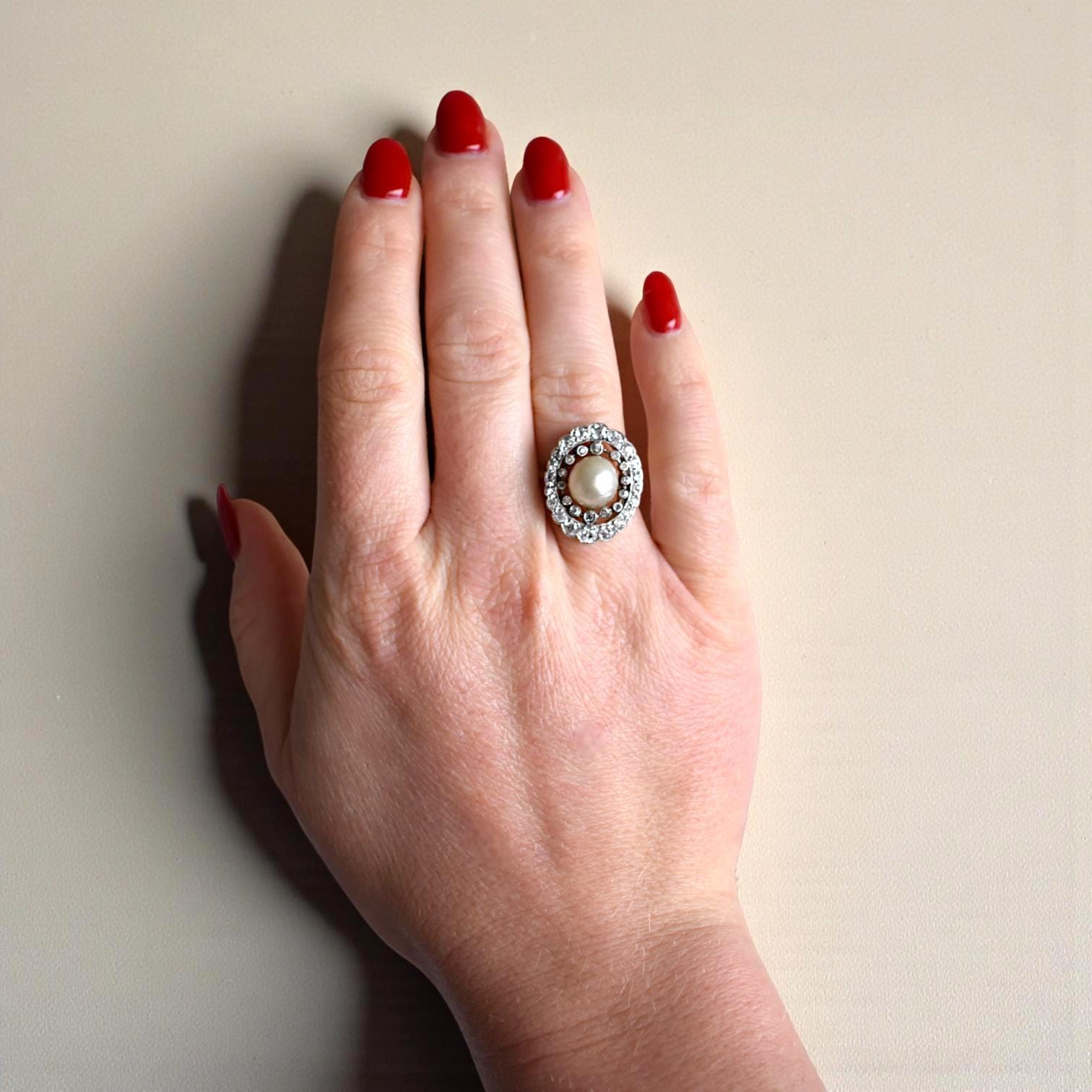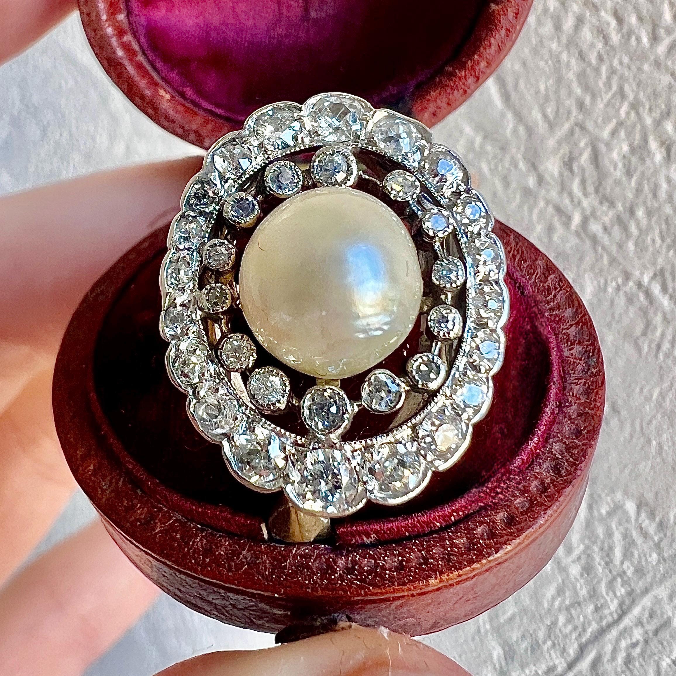 - Birthday Ring, Engagement Ring, Gift for Her, Edwardian ring, Natural pearl, Old cut Diamonds